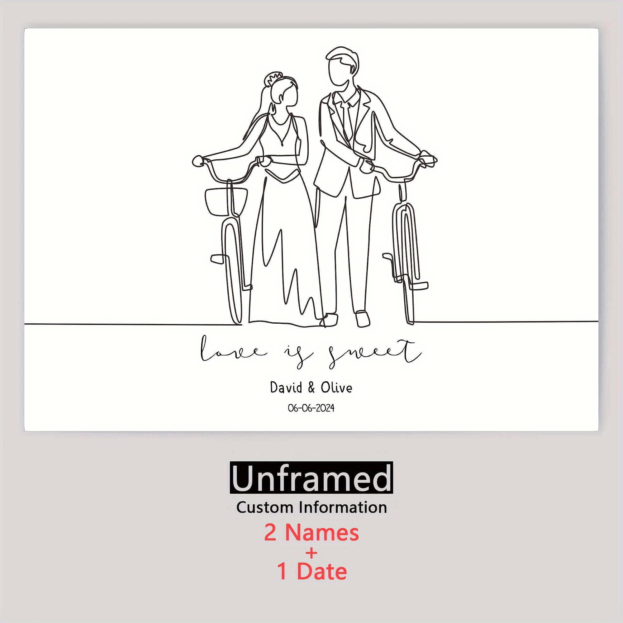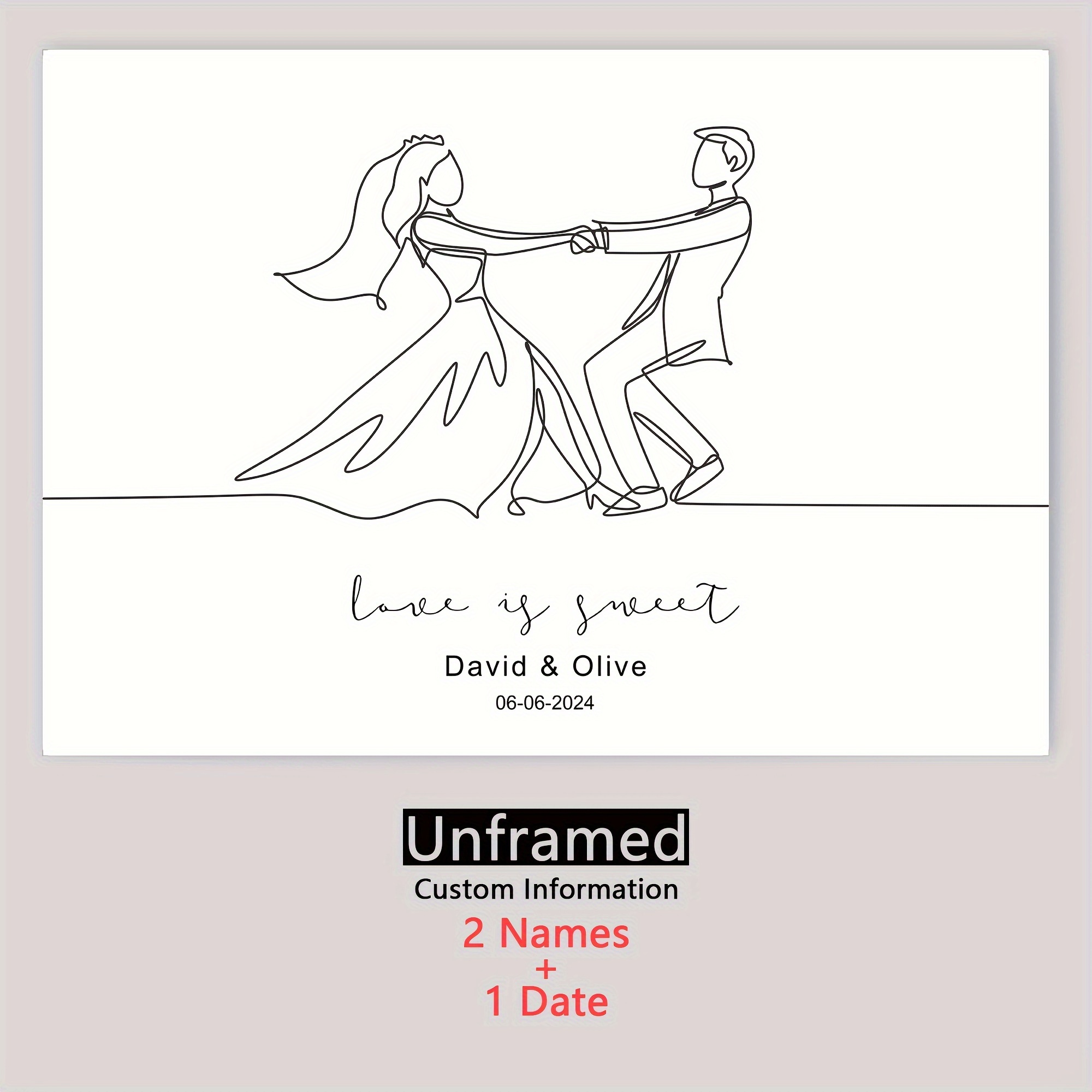 1 st personliga älskare väggkonst, söt bröllopsdagsaffisch